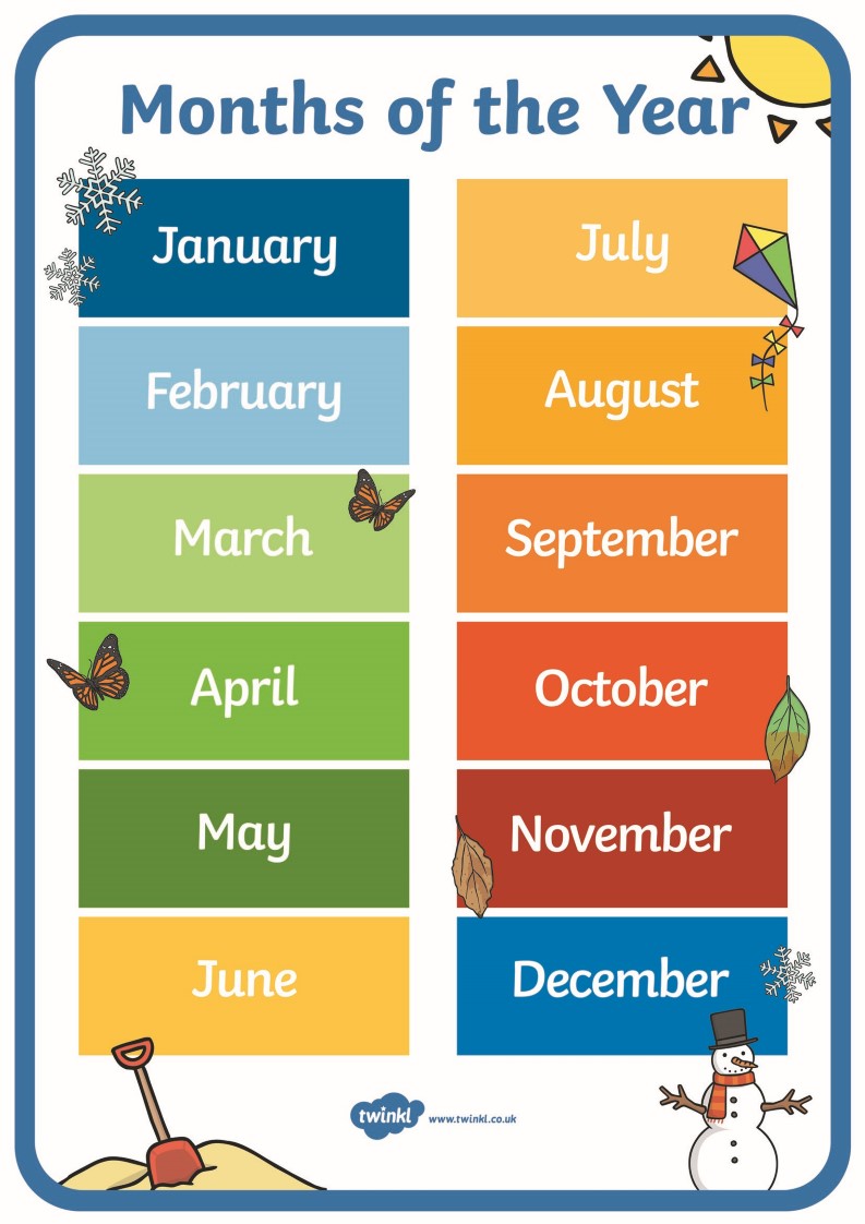 Months Of The Year Poster For Kids لوحة عن اشهر السنة للاطفال Months In A Year Projects To Try Kids