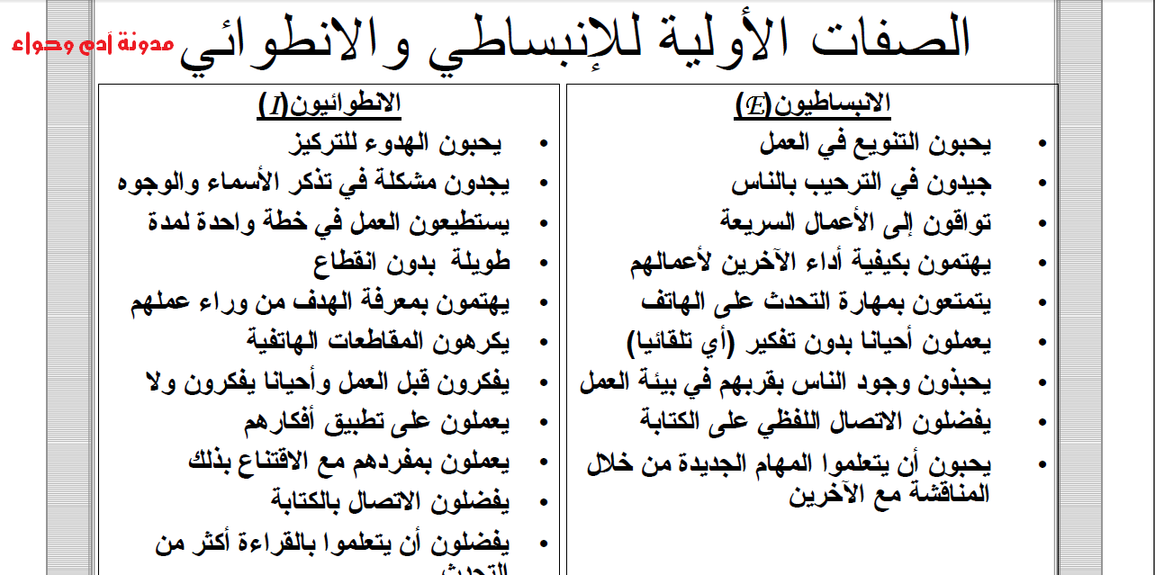مدونة الباقي الأنماط الستة عشر للشخصية وفقا لمؤشر Mbti