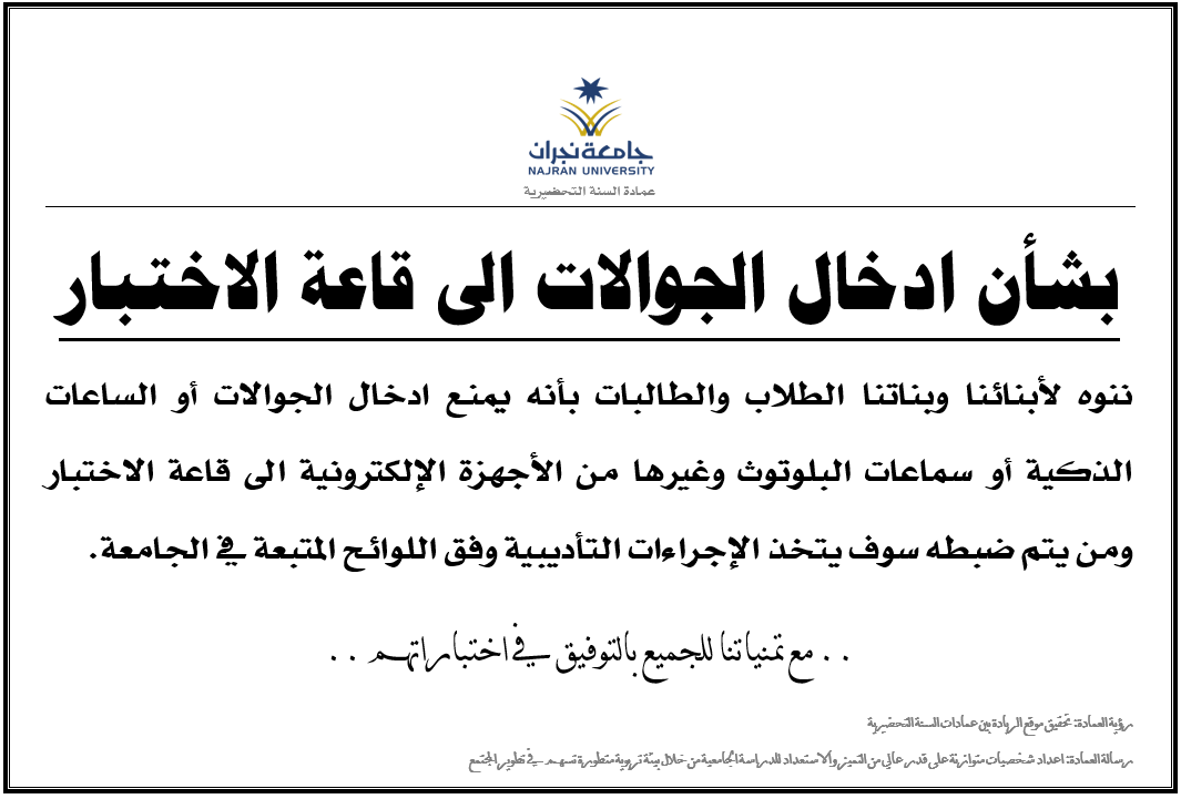 Deanship Of Preparatory Year Guideline تعليمات مهمة بخصوص الاختبار النهائي الإعلانات