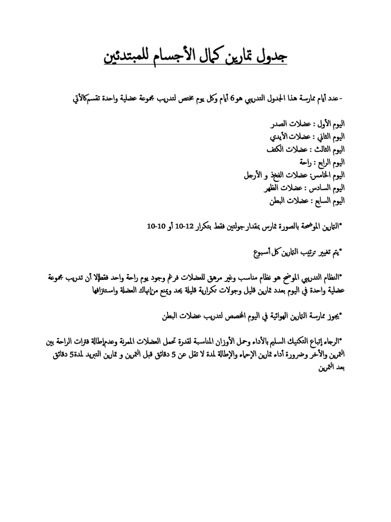 جدول تمارين كمال الاجسام للمبتدئين عدد نادي قرطبة الرياضي Q S C فيسبوك