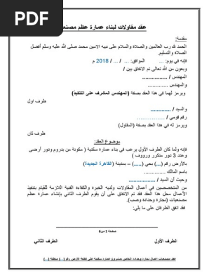 D9 88ذج عقد مقاولات عظم بدون مواد