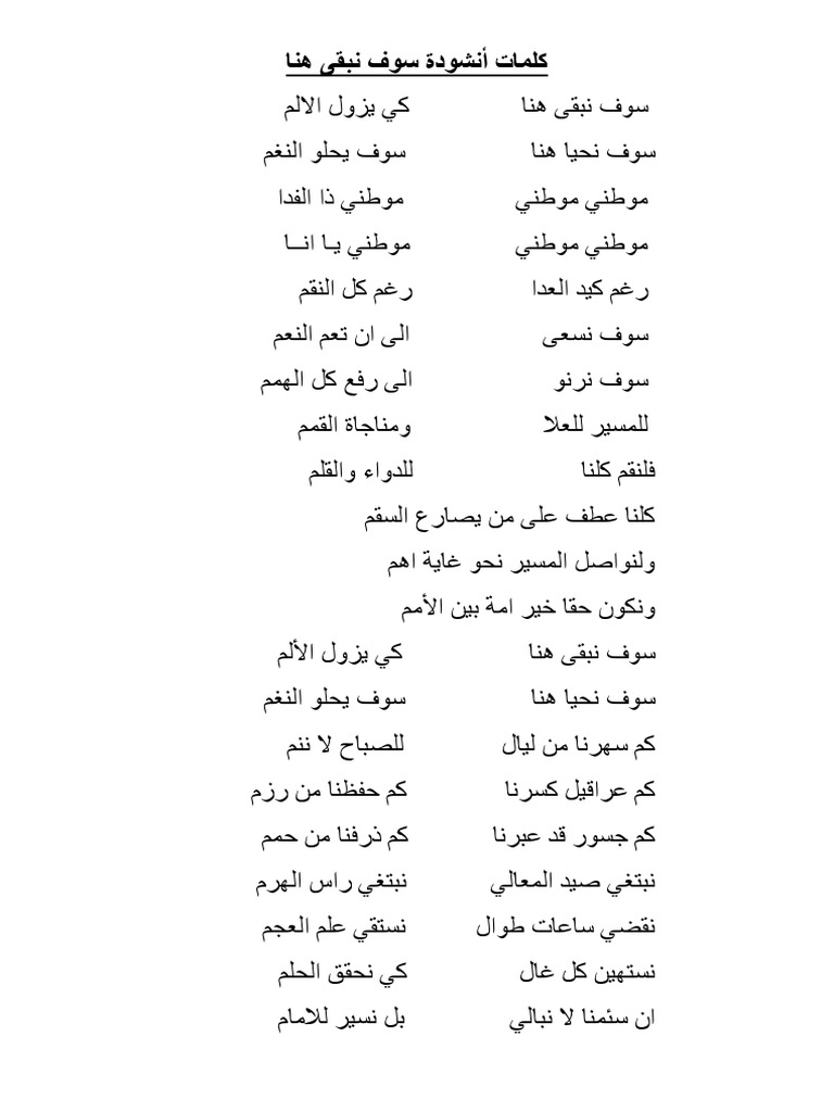 كلمات نشيد سوف نبقى هنا